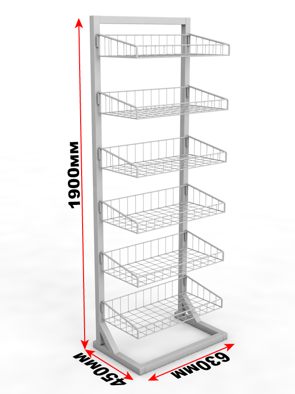 Стеллаж с 6-тью полками-корзинами. Предназначен для хранения мелкого спортивного инвентаря.